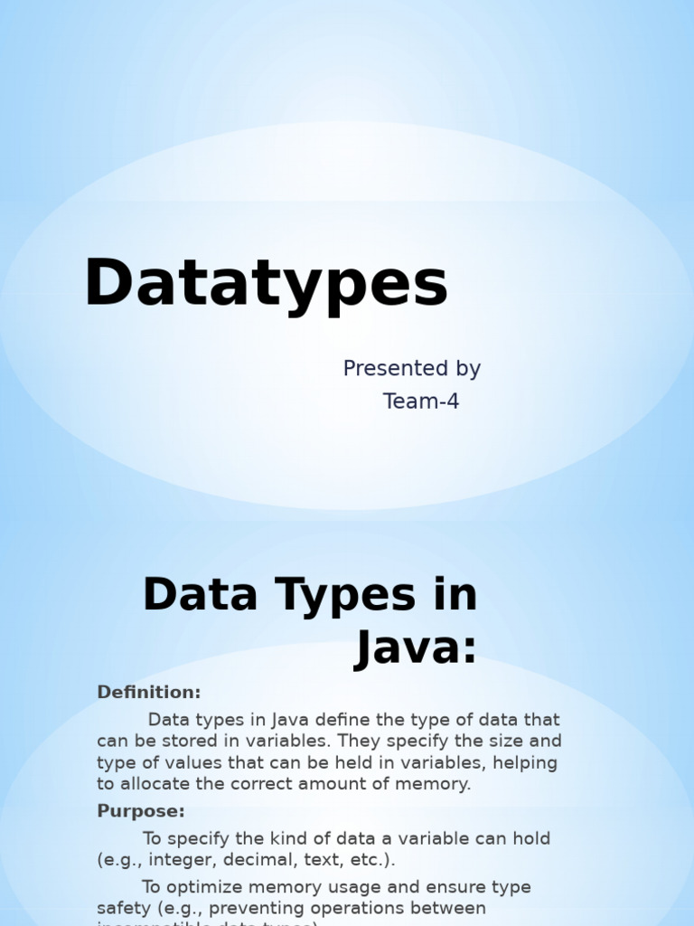 Data Types: Different data types (e.g., integers, strings, booleans)