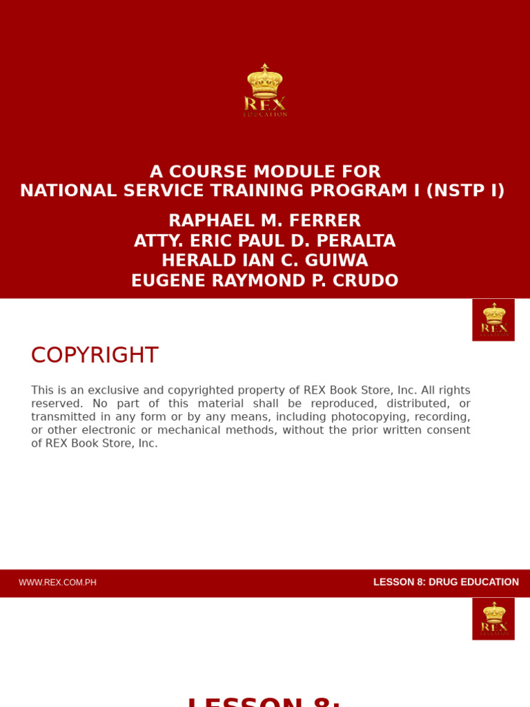 WWW.REX.COM.PH LESSON 8: DRUG EDUCATION