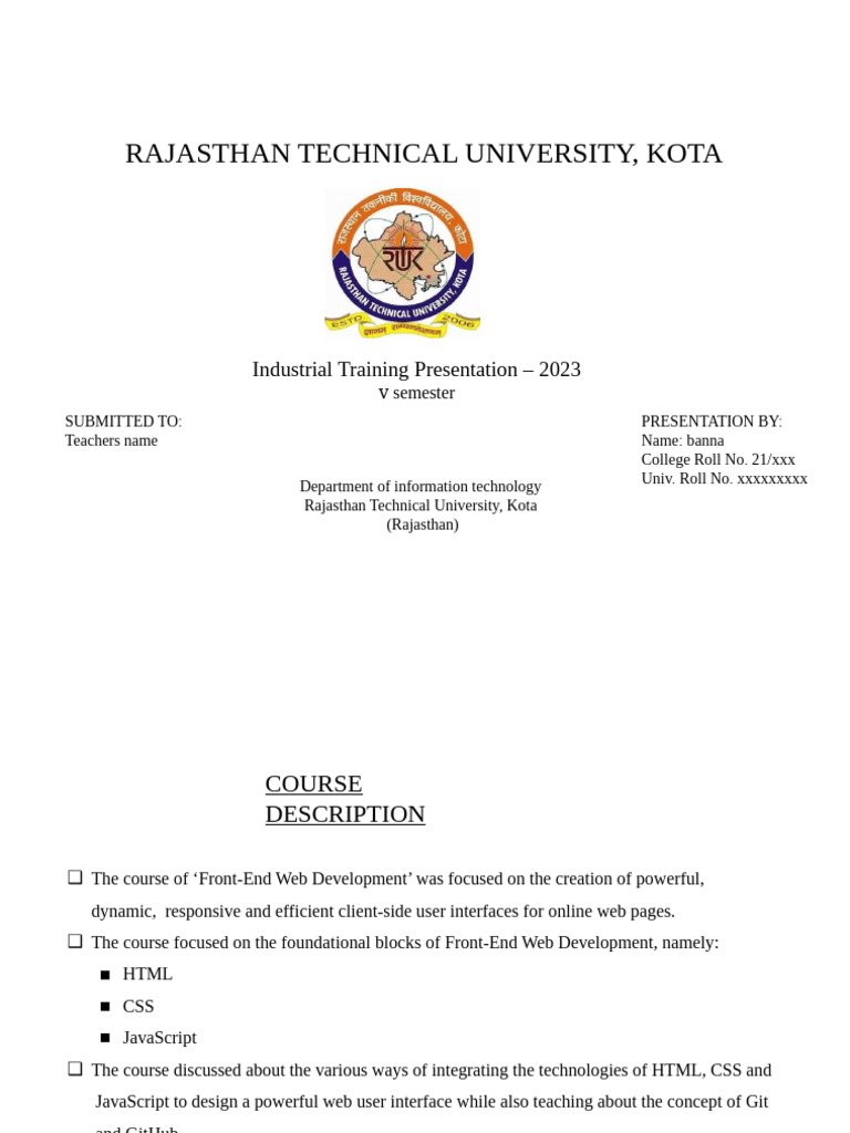 Department of information technology Univ. Roll No. xxxxxxxxx