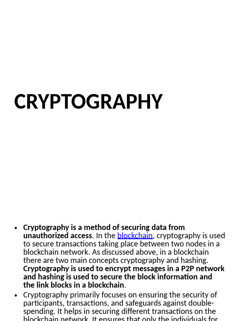 • Encryption: Conversion of normal text to a random sequence of bits.