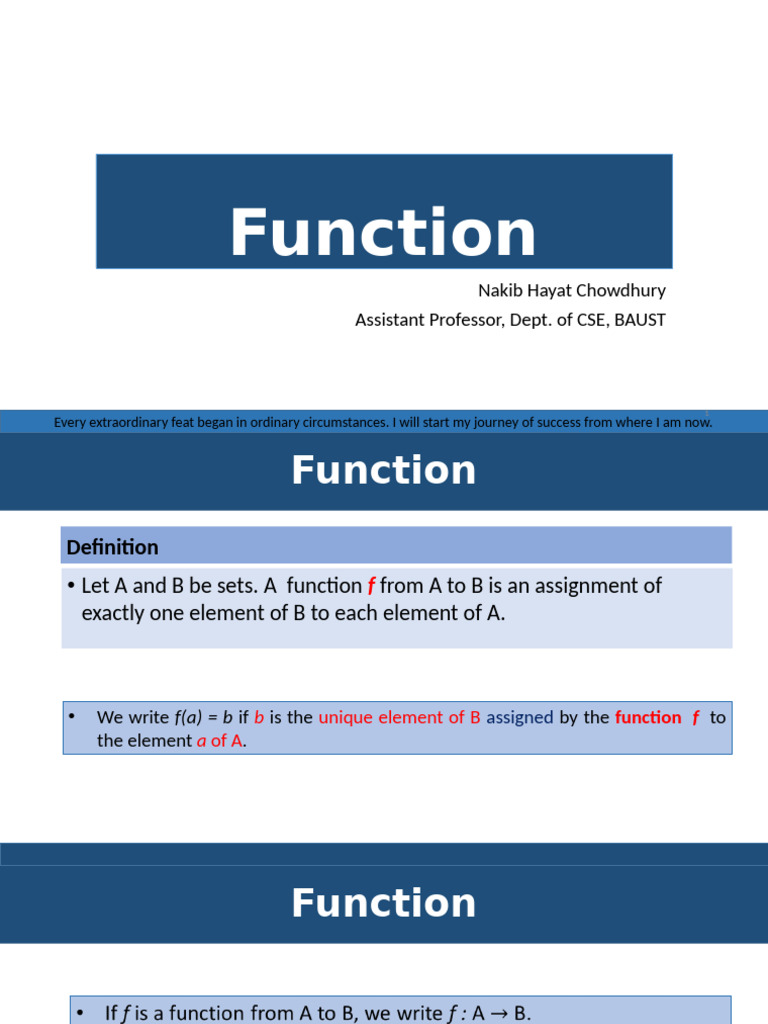 • We write f(a) = b if b is the unique element of B assigned by the function f to