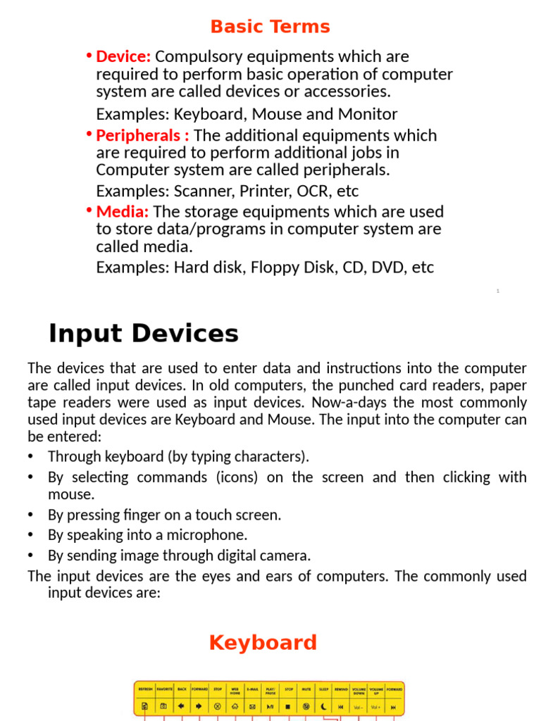 Examples: Scanner, Printer, OCR, etc