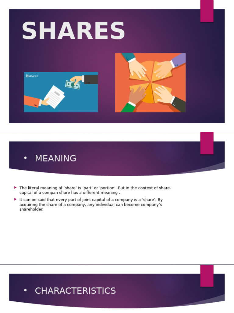 It can be said that every part of joint capital of a company is a ‘share’, By