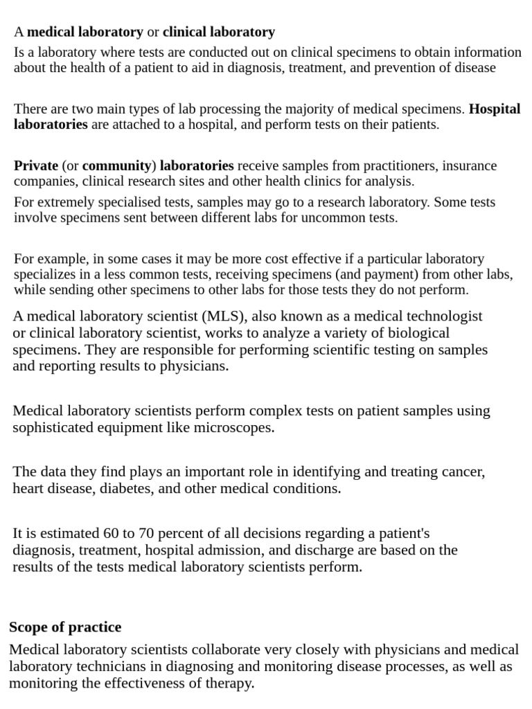 laboratory technicians in diagnosing and monitoring disease processes, as well as