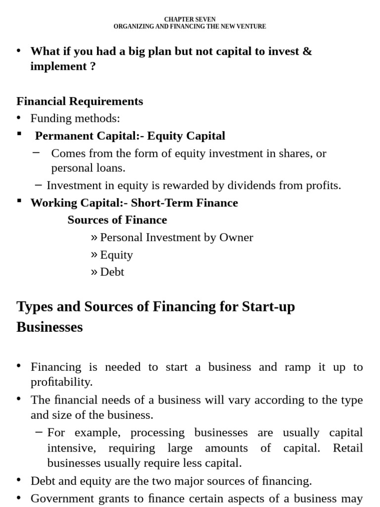 ORGANIZING AND FINANCING THE NEW VENTURE