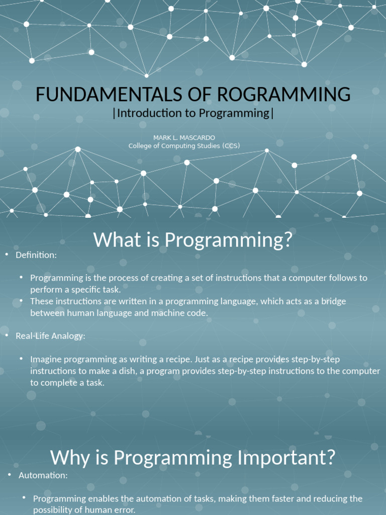 • Imagine programming as writing a recipe. Just as a recipe provides step-by-step