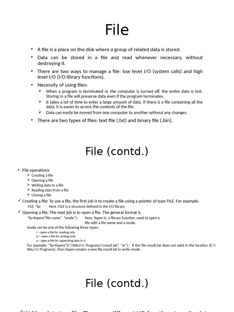 FILE *fp; Here, FILE is a structure defined in the I/O library.