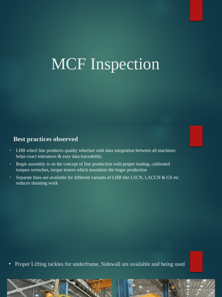 • Bogie assembly is on the concept of line production with proper tooling, calibrated