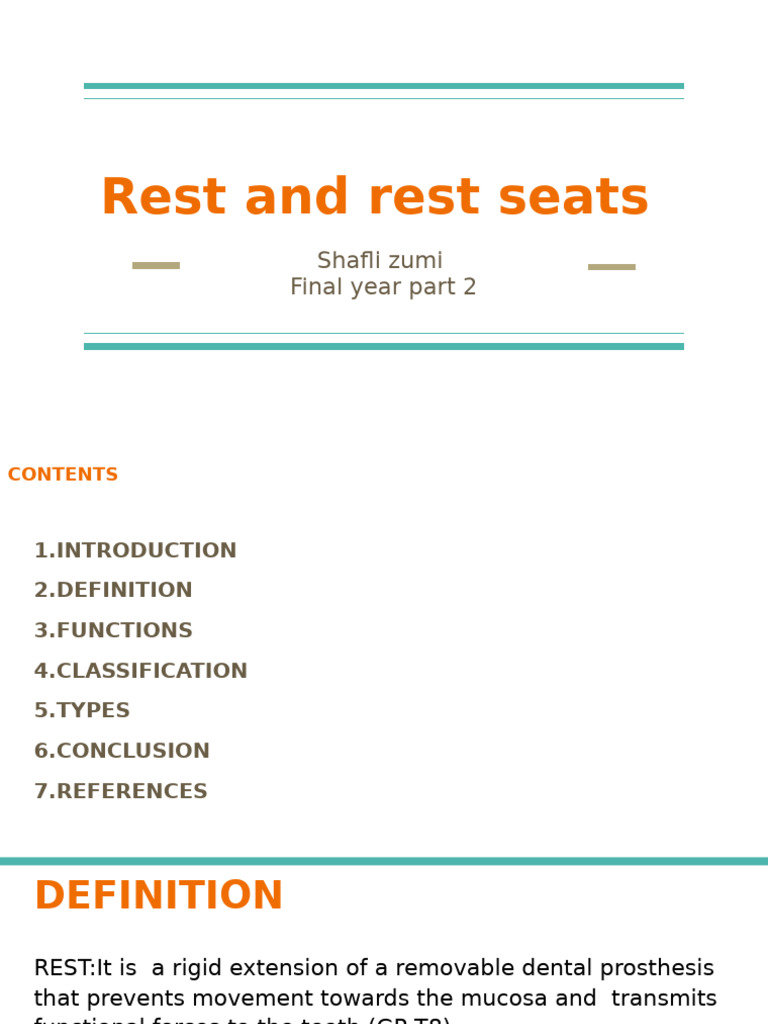 1.SUPPORT: The primary function of the rest is to provide support to the removable