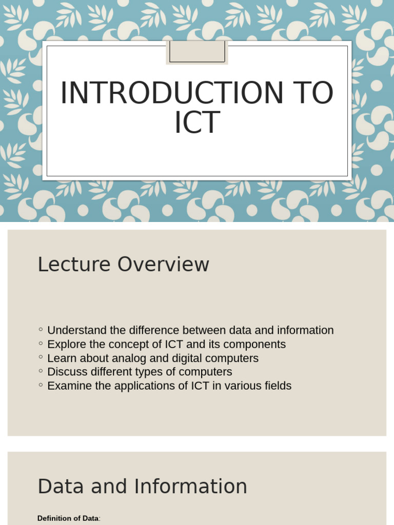 ◦ Components: Includes central processing unit (CPU), memory (RAM), input/output devices,