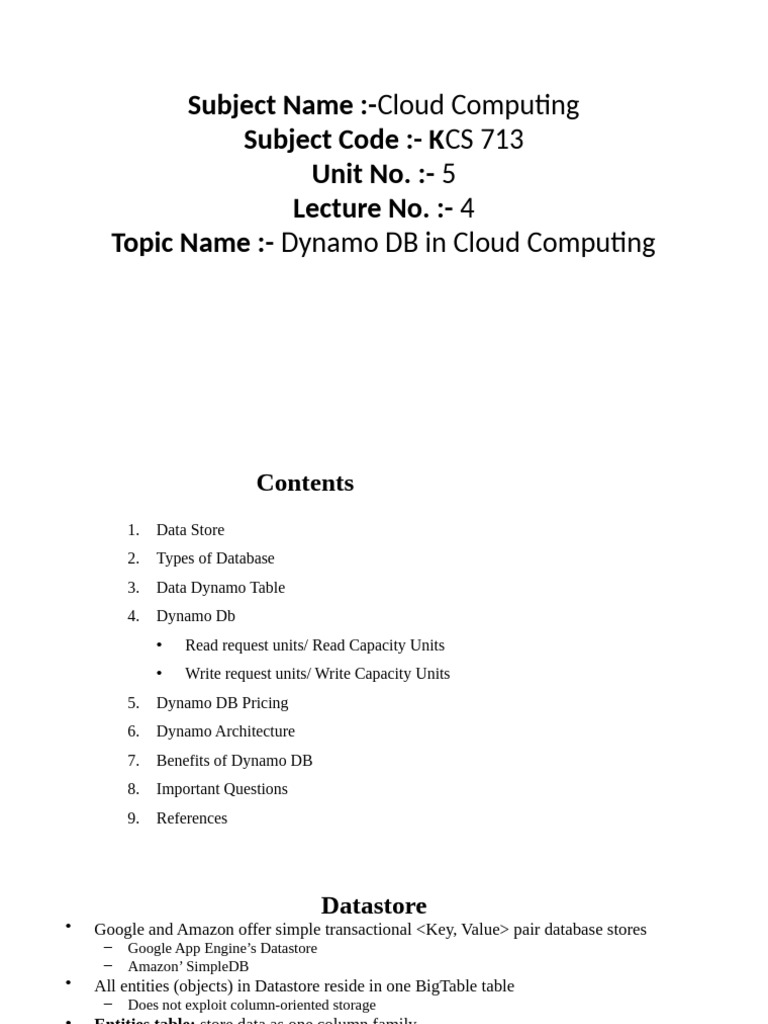 • Google and Amazon offer simple transactional <Key, Value> pair database stores