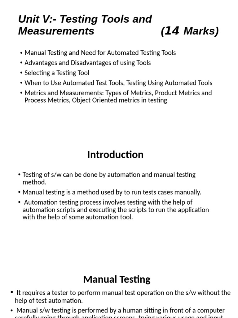 Unit V:- Testing Tools and
