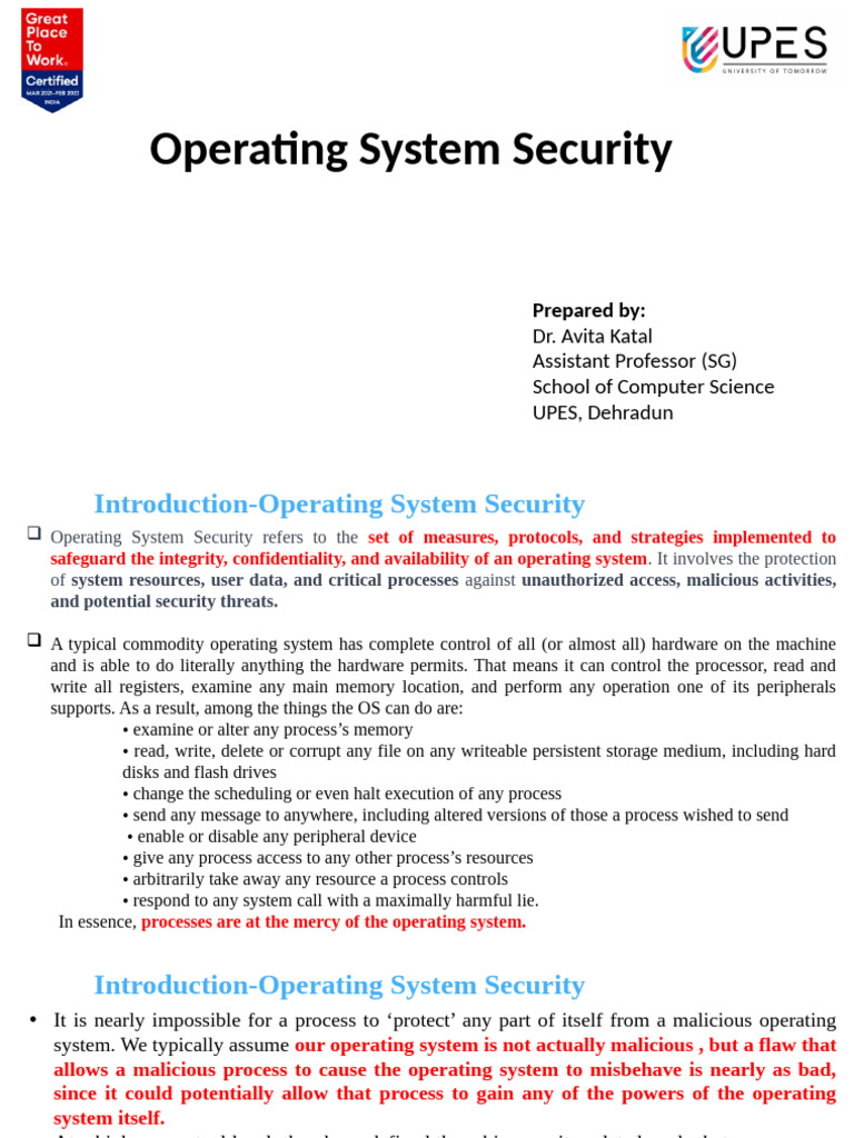safeguard the integrity, confidentiality, and availability of an operating system. It involves the protection