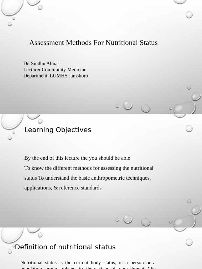 ► It is an essential features of all nutritional surveys It is the simplest & most