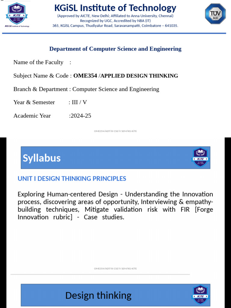 Subject Name & Code : OME354 /APPLIED DESIGN THINKING