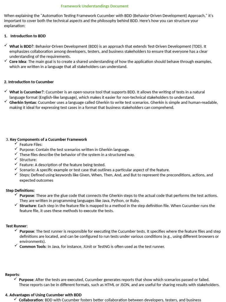 When explaining the "Automation Testing Framework Cucumber with BDD (Behavior-Driven Development) Approach," it's