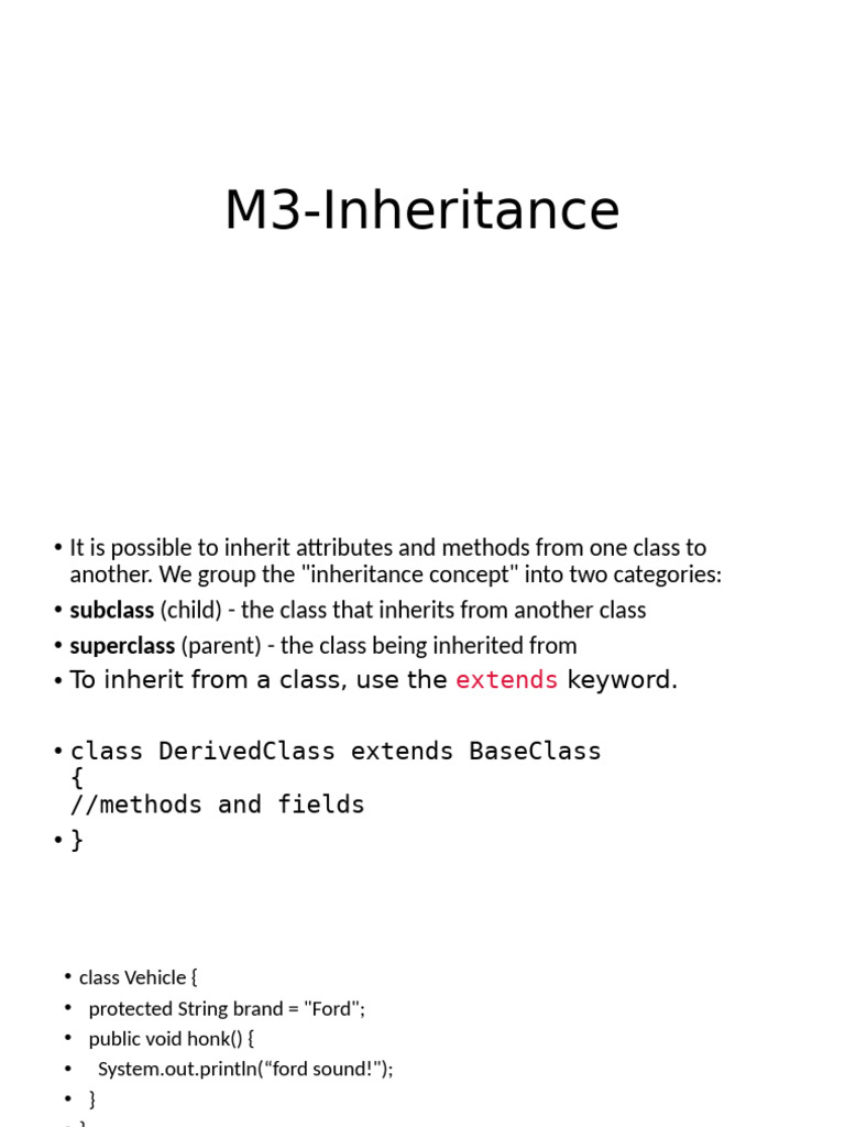 • System.out.println(); /* The subclass has access to all public members of its superclass. */