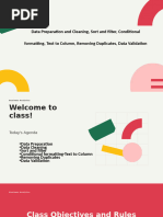• Recap of data entry techniques, sorting, filtering, conditional formatting, and tables.
