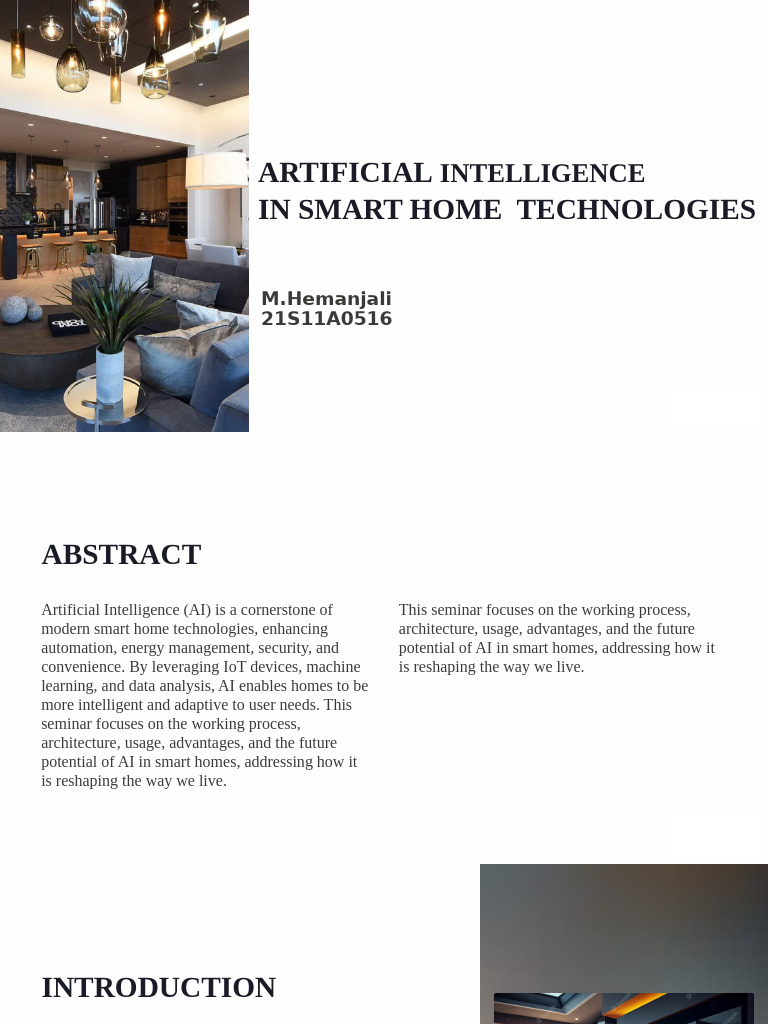 automation, energy management, security, and potential of AI in smart homes, addressing how it