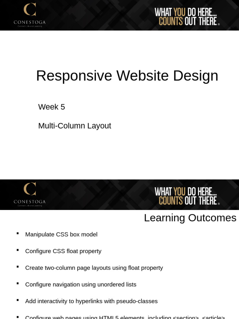 Configure web pages using HTML5 elements, including <section>, <article>