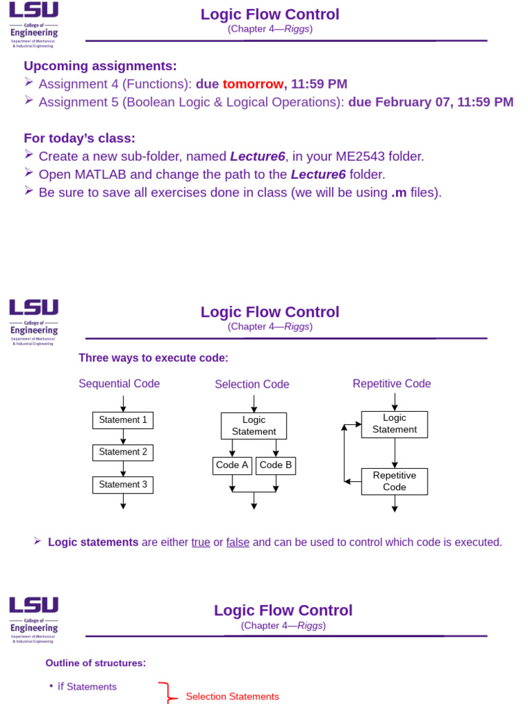 Logic “switches” are needed in almost every program; e.g., pipe flow