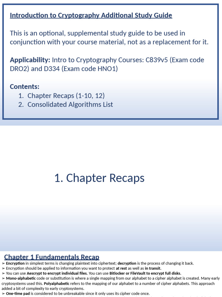 Introduction to Cryptography Additional Study Guide