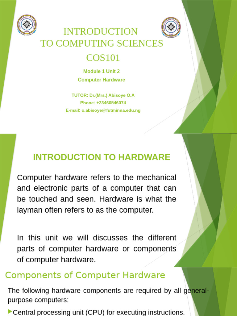 TUTOR: Dr.(Mrs.) Abisoye O.A