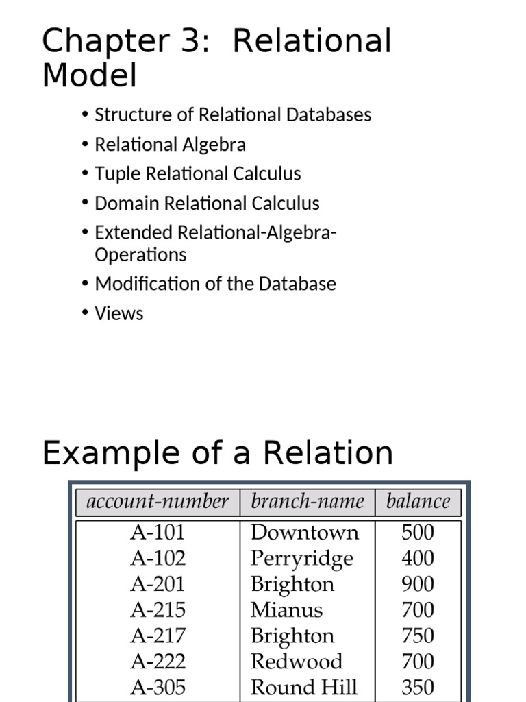 • Formally, given sets D1, D2, …. Dn a relation r is a subset of