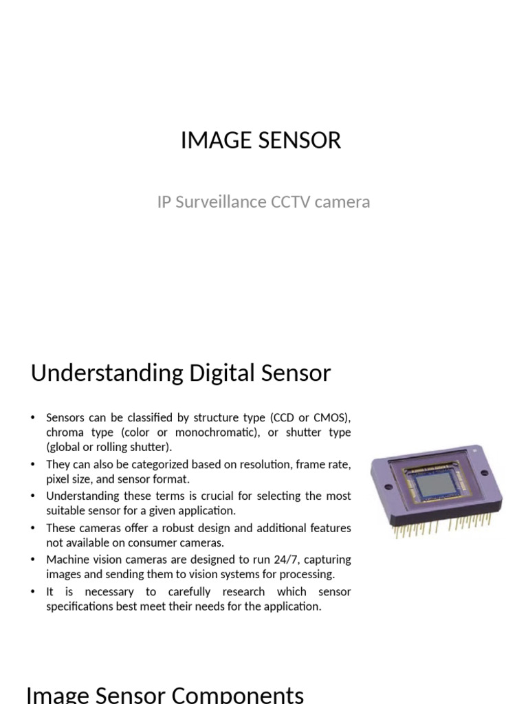 • The sensor type (CCD or CMOS) determines how information is transferred to the next stage: as