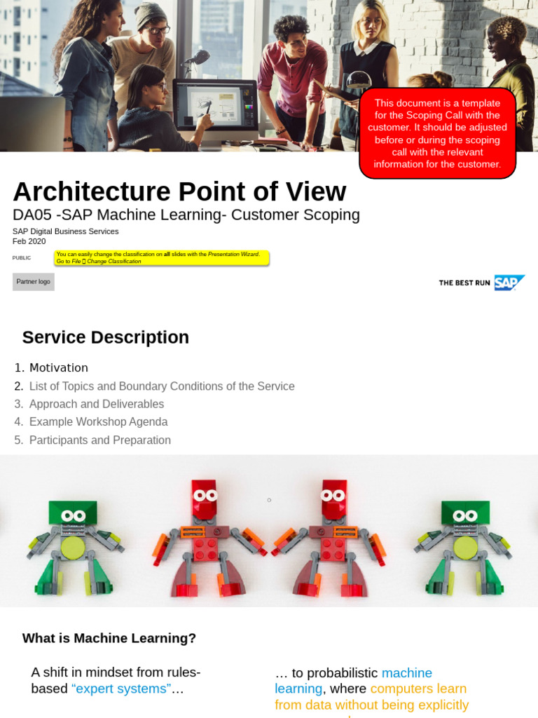 • Review of Architecture to enable SAP Machine Learning, including Integration aspects and transition possibilities