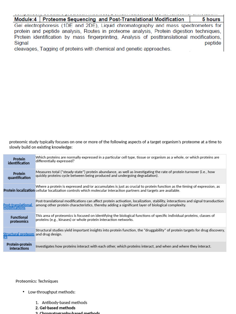 proteomic study typically focuses on one or more of the following aspects of a target organism’s proteome at a time to