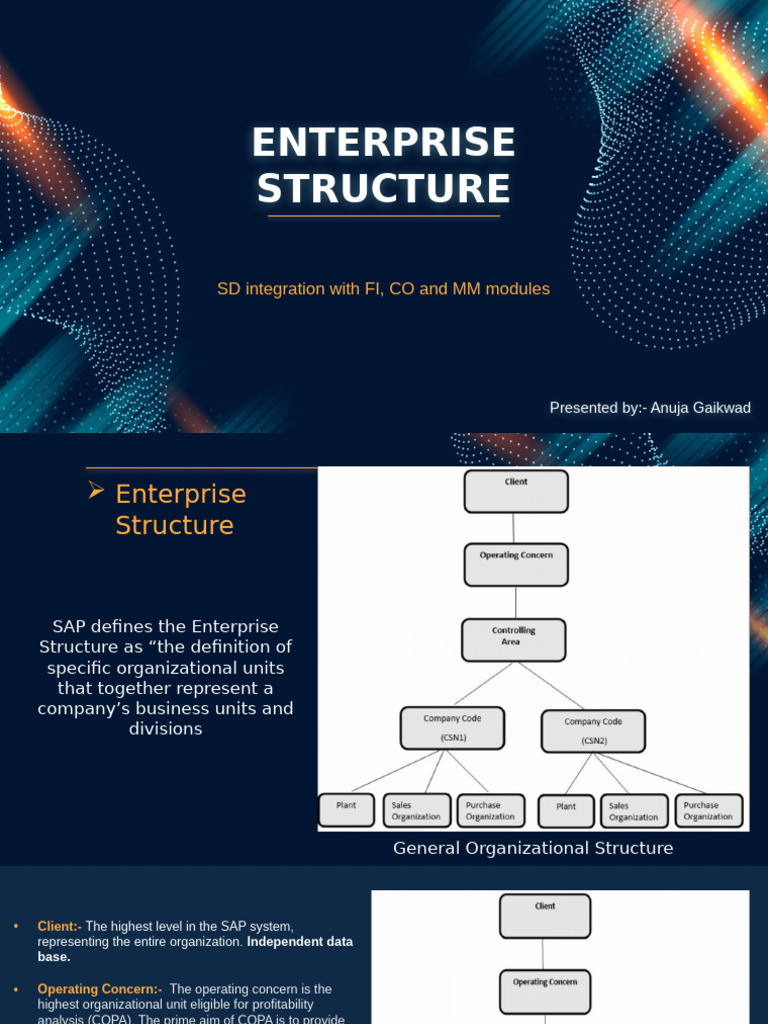 Sales Organization and a across all modules as the to the Storage Location in MM to