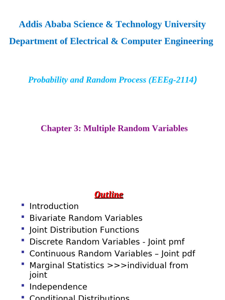 Example: The joint cdf of a bivariate r.v. (X, Y) is