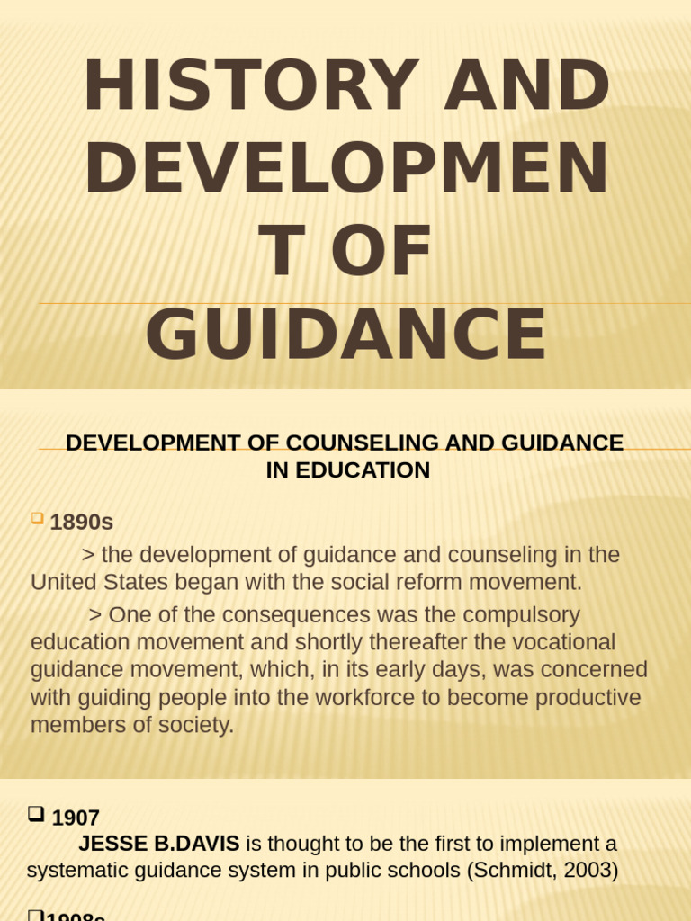 DEVELOPMENT OF COUNSELING AND GUIDANCE