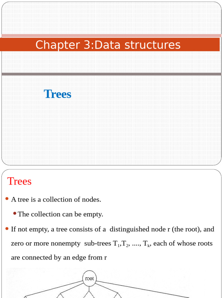 ⚫ If not empty, a tree consists of a distinguished node r (the root), and