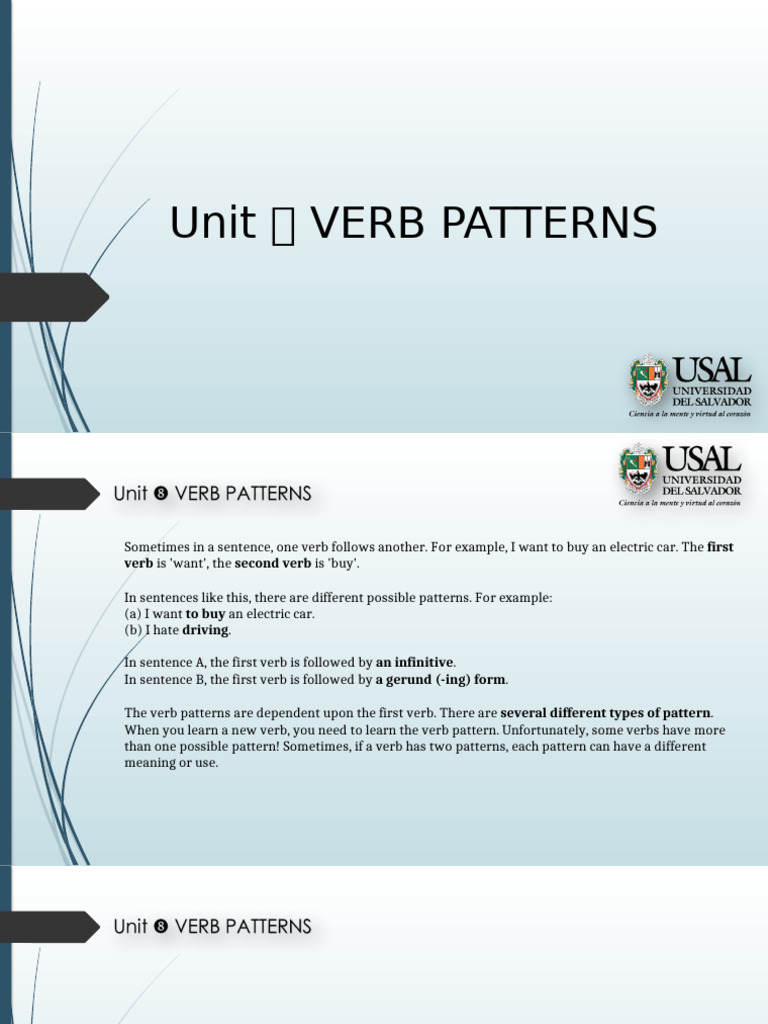 The verb patterns are dependent upon the first verb. There are several different types of pattern.