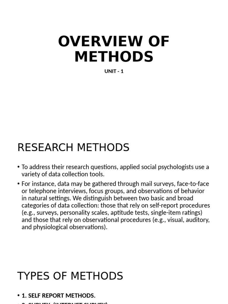 • SURVEY - Surveys involve a series of questions about large group of people to