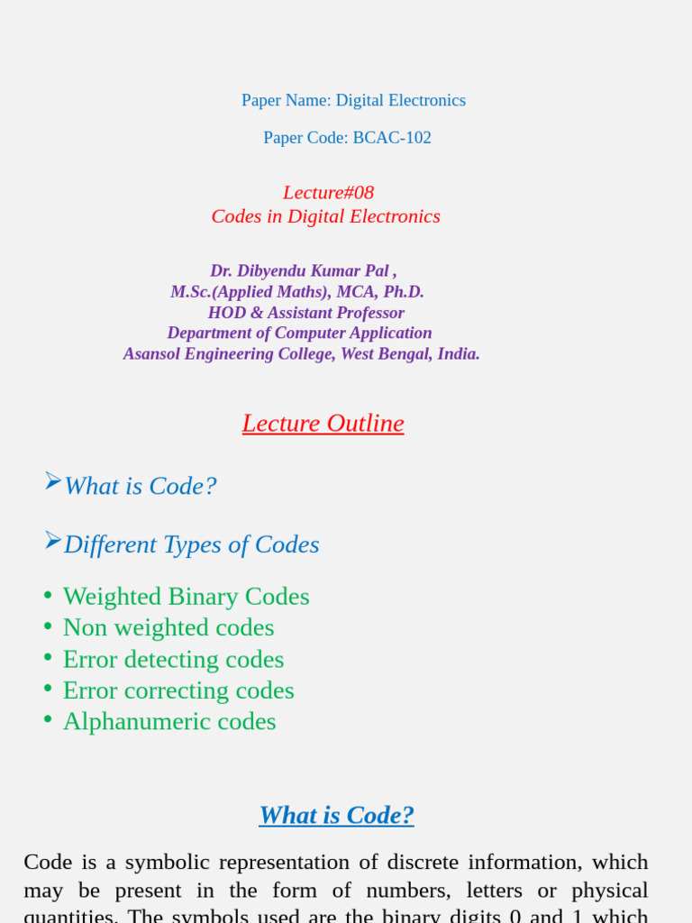Weighted Binary Codes, ii) Non-weighted Codes, iii) Error