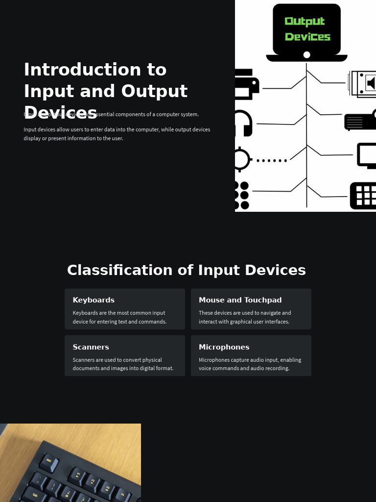 • Mouse: A pointing device that detects two-dimensional motion relative to a surface, allowing