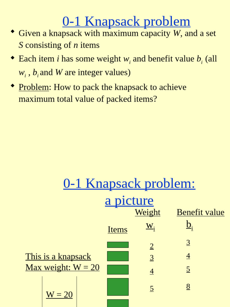 max{B[k 1, w], B[k 1, w wk ] bk } else