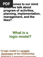 Logic model Logically links inputs, Shows the causal r/p b/n Yes – at all stages of