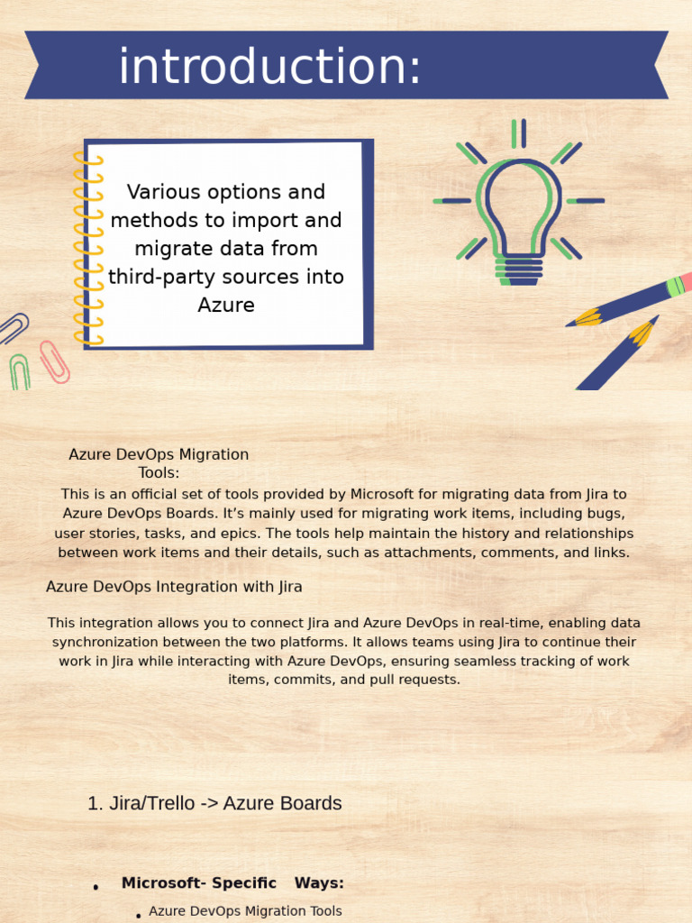 various systems and migrating data between platforms like Jira and Azure Boards. It