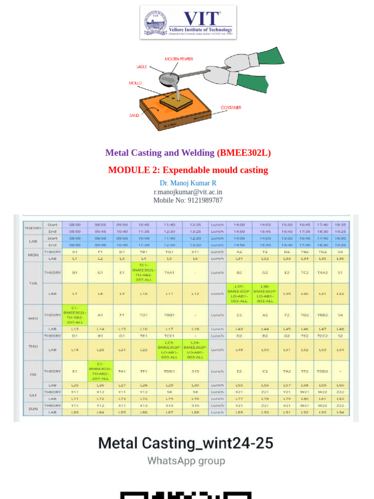 material. It is placed into moulding flask and sand rammed over it which forms an object