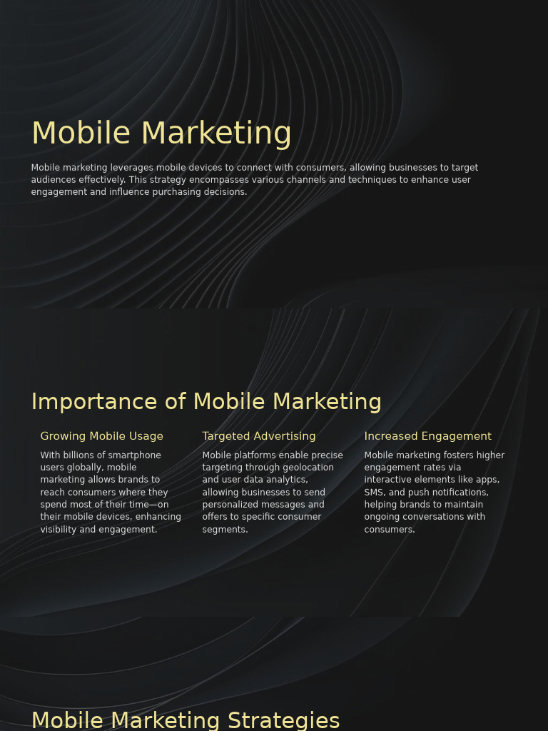 Mobile marketing leverages mobile devices to connect with consumers, allowing businesses to target