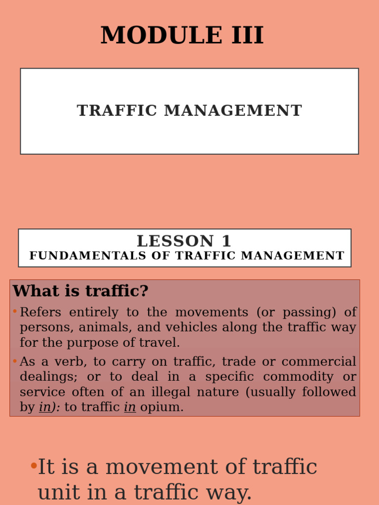 FUNDAMENTALS OF TRAFFIC MANAGEMENT