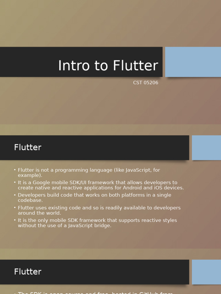 • Flutter comes with all the UI Widgets you need and is compatible with most IDEs