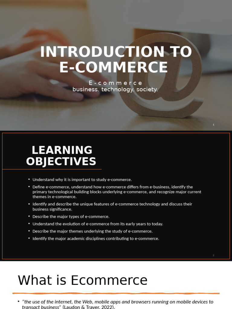 • Define e-commerce, understand how e-commerce differs from e-business, identify the