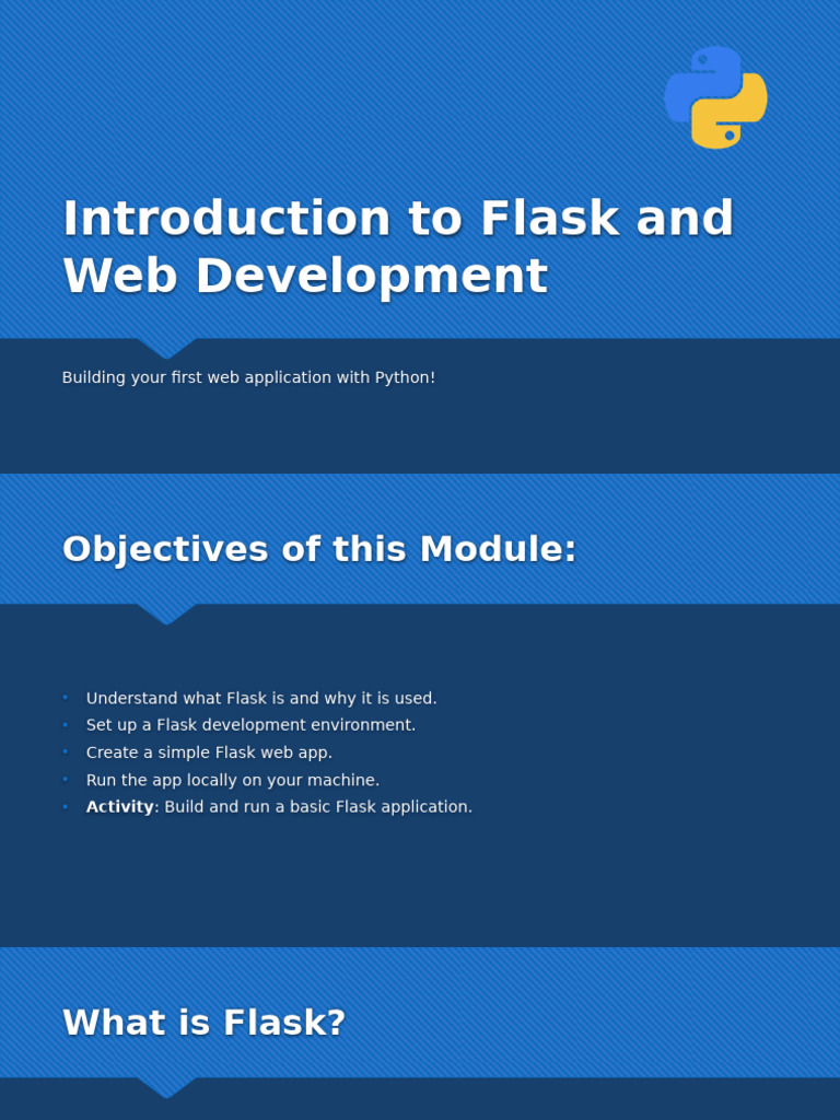 Next Steps: Learn about Docker and containerizing Flask apps in Module 2.