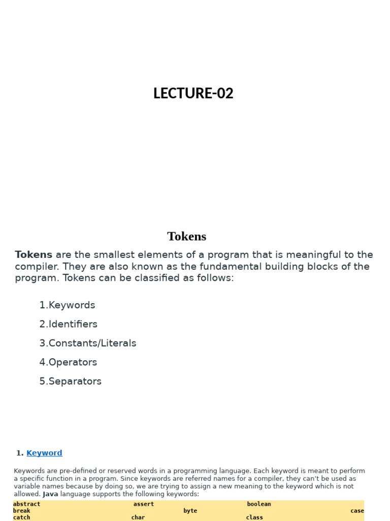 a specific function in a program. Since keywords are referred names for a compiler, they can’t be used as