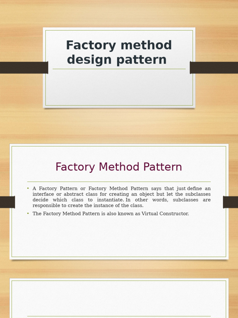 • Factory Method Design use abstract classes to define and maintain
